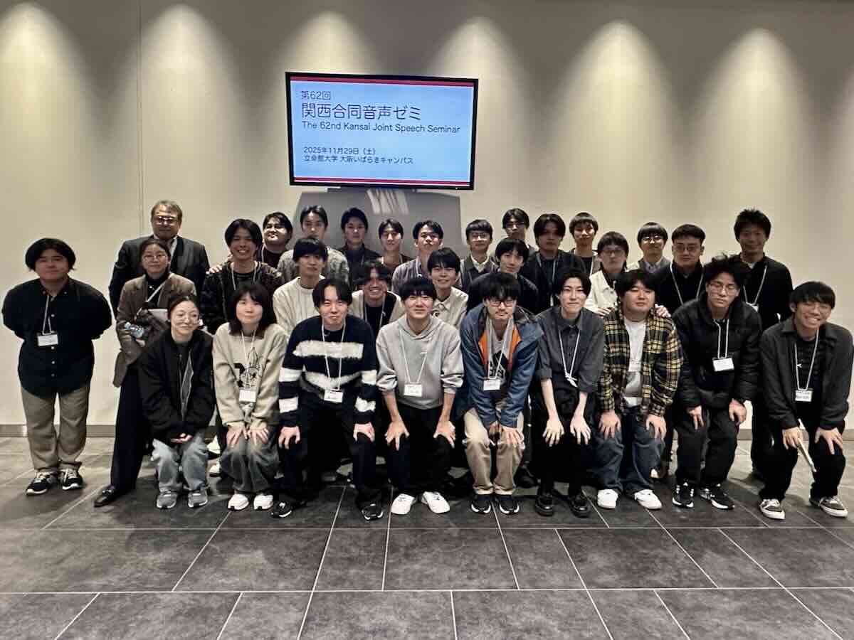 2025年11月29日(土)立命館大阪いばらきキャンパスにて第62回関西合同音声ゼミが開催され、西浦研から学生・スタッフ合わせて34名が参加し、9件の研究成果発表を行いました。B3,B4生らはこれが初めての対外的な研究交流の場となった学生もいましたが、他大学学生の発表について、説明のスタイルや力点などを細かく観察することで、自身の今後の学びや課題を再確認することができました。特に院生らは、この経験を糧に音響分野の専門家らが集まる権威ある国際会議への採録を目指して、さらに活躍することを切に願っております。
