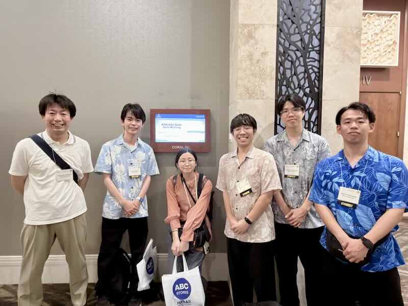 2025年12月1〜5日 米国ハワイ州ホノルル市のHilton Hawaiian Village にて6th ASA-ASJ Joint Meeting(日本音響学会と米国音響学会の合同会議)にて西浦研から学生・スタッフ合わせて6名が参加し、5件の研究成果発表を行いました。特にM1らはこれが初めての海外開催の国際会議での発表となりましたが、自身の研究活動をしっかりと英語で参加者らに発信することができました。また米国の物価高および日本の円安にも悩まされ滞在中は経済的に苦しい想いも多々ありましたが、日本と海外のリアルな差を肌で感じとることができ、非常に大きな財産となりました。今後も多くの学生が国際舞台で活躍することを願っております。