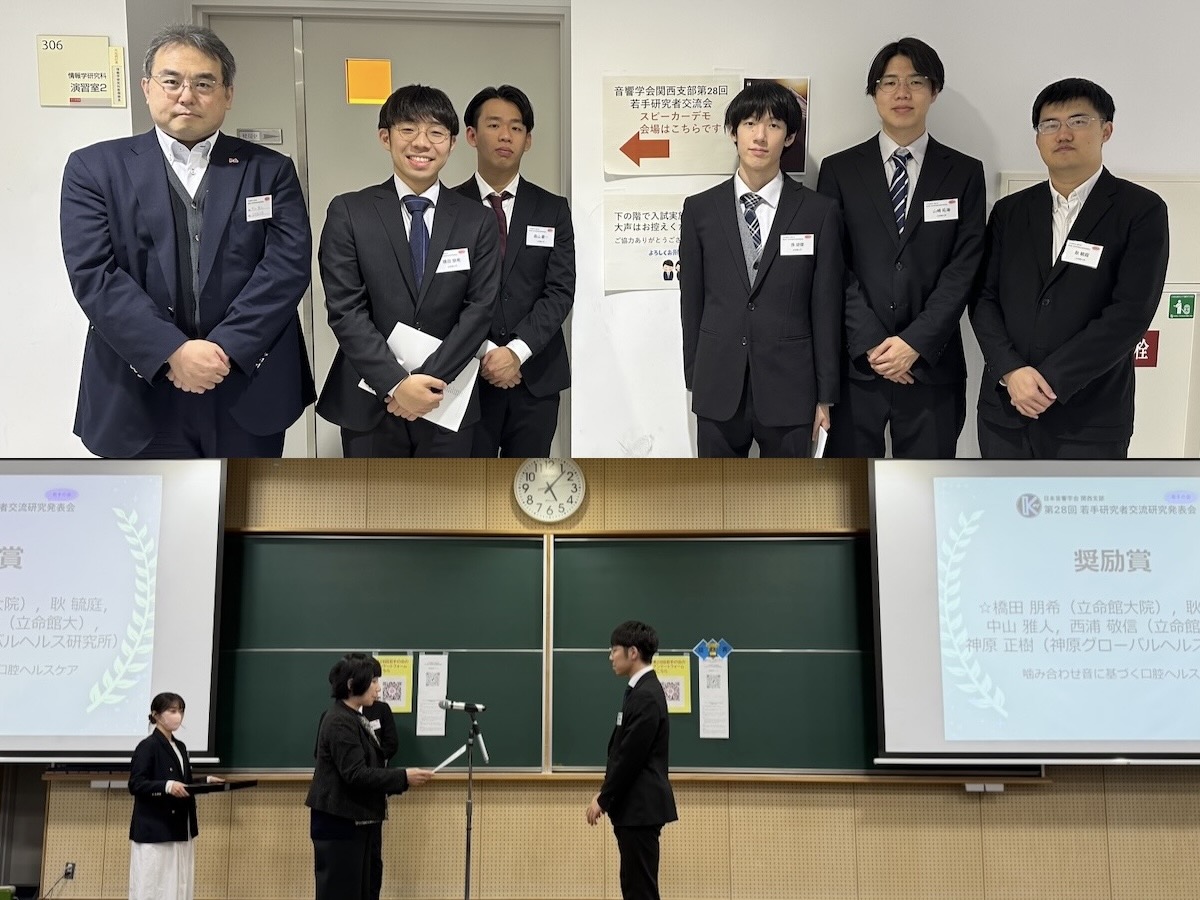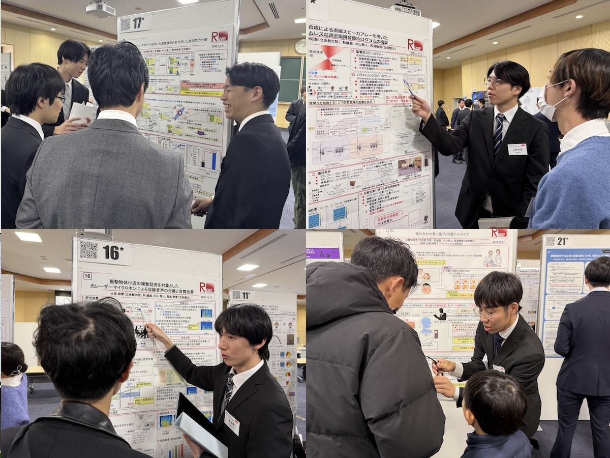 2025年12月13日(土)京都大学吉田キャンパスにて日本音響学会関西支部第28回若手研究者交流研究発表会が開催されました。西浦研からは学生・スタッフ合わせて6名が参加し、4件のポスター発表を行いました。当日は西日本および関西方面の音関係の研究室から多数の研究者や学生らが参加し、濃厚なディスカッションが行われ、普段とは異なる視点での多数の刺激を受けることができました。発表の結果、橋田朋希さんが奨励賞を受賞しました。今後、聴講者のバックグラウンドや技術的興味に対して柔軟に適応する能力を身に着け、自身の発表が少しでも相手に伝わるにはどうすればよいのか?、よく考えながら発表する力を醸成できればと願っております。